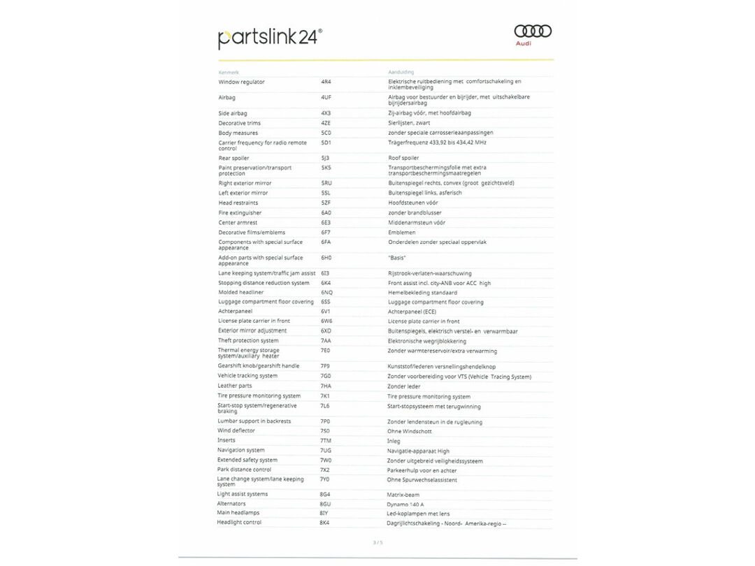 Aan boord van deze Audi houden verschillende geavanceerde systemen voor u de weg in de gaten. Ze waarschuwen u voor noodsituaties en kunnen in een aantal gevallen ook zelf ingrijpen. Keep your lane? Het Lane-keeping systeem zorgt er automatisch voor. Forward collision warning waarschuwt voor een kop-staart botsing. Verder is deze auto uitgerust met hill hold functie, brake assist en bandenspanningcontrolesysteem.