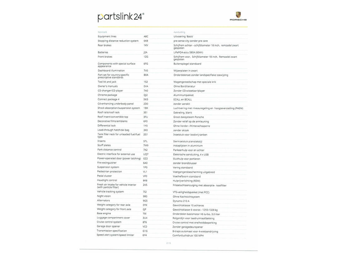 Het eigentijdse interieur wordt natuurlijk helemaal volmaakt met het digitale dashboard. Door het combineren van beelden van vier camera's, biedt de 360 graden camera een naadloos en gedetailleerd beeld van de hele omgeving rondom deze auto. De voordelen van een trekhaak zonder de nadelen. De elektrisch inklapbare trekhaak is gemakkelijk in het gebruik en tast de lijnen van de auto niet aan. De auto's van vandaag rijden niet alleen subliem, maar luisteren ook goed. Via een speciale app kunt u overal diverse functies controleren en de status van de auto inzien. Een belangrijke veiligheidsvoorziening is de bediening van het audio-installatiesysteem en het navigatiesysteem met harde schijf, via knoppen op het stuur en middels spraakbediening. DAB-ontvangst geeft daarbij een kraakheldere ontvangst. U bent in deze Porsche ook voorzien van met leder bekleed dashboard, WIFI-hotspot, automatische airconditioning, sportstuur met schakelpaddels, draadloos opladen en regensensor.