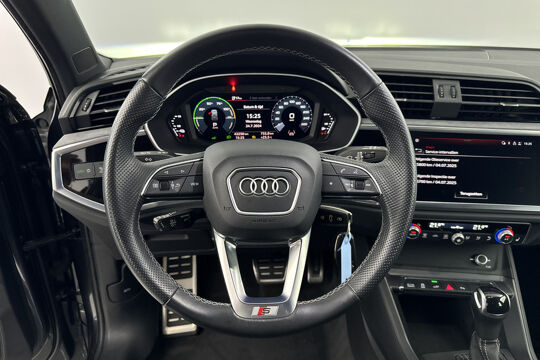 Modern design en bijzondere techniek bepalen de kwaliteiten van de hybride Audi Q3. Met de kenmerkende S-Line styling toont deze Audi zich van zijn sportieve kant. Rijden met deze Audi Q3 is energiezuinig, want de hybride motor combineert brandstof met elektriciteit. Minder vaak langs de pomp, dus dat scheelt! In de guurste maanden is de meegeleverde stoelverwarming een absolute weldaad! Een handige voorziening op deze auto is de elektrische achterklep die u op afstand kunt openen. In deze auto profiteert u onder andere ook van: 18 inch lichtmetalen velgen, LED koplampen, halflederen bekleding, warmtewerend glas, zwarte hemelbekleding en in delen neerklapbare achterbank.