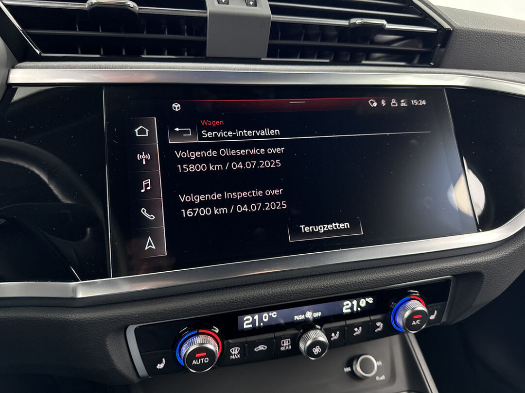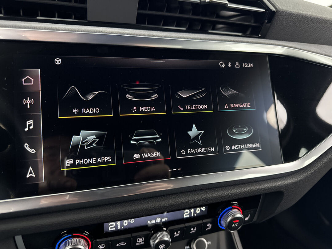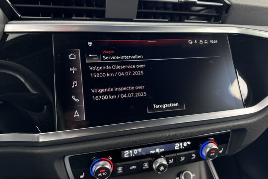 Met het digitale dashboard van deze auto is de aanpassing van uw cockpitinterface een fluitje van een cent. Adaptive cruise control houdt de ingestelde snelheid vast en houdt automatisch afstand tot uw voorligger. Deze Audi Q3 is 'connected'. Belangrijke functies worden permanent gemeten en zijn uit te lezen via een speciale app, ook op afstand. Met de routebegeleiding van het navigatiesysteem met harde schijf kunt u zich volledig op het verkeer concentreren. Het spreekt voor zich dat een auto als deze ook van automatische airconditioning is voorzien. Wat u ook in deze auto kunt vinden zijn lederen sportstuur, DAB ontvangst, parkeersensoren achter, regensensor, isofix-aansluiting en centrale deurvergrendeling met afstandsbediening.