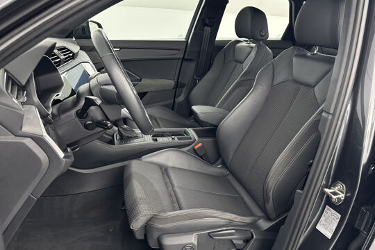 Een echt goede auto biedt meer dan alleen maar hoge prestaties en een comfortabele rit. Zo'n auto verrijkt uw leven door een optimale combinatie van doordachte vormgeving en hoogstaande techniek. Deze Audi Q3 is daar een goed voorbeeld van. Mag het een beetje exclusief en sportief? Mooi, want deze is uitgevoerd met S-Line styling. Elektrisch? Benzine? Bij deze Audi Q3 kan het allebei. De hybride motor biedt de ideale keuzecombinatie. Koude start? Niet met de verwarmbare voorstoelen! De sportstoelen houden u en uw passagier stevig vast tijdens een snelle rit, maar bieden ook altijd comfortabele ondersteuning. Een praktische extra is de elektrisch bedienbare achterklep die opent en sluit met een druk op de knop. Natuurlijk behoren 18 inch lichtmetalen velgen, LED koplampen, halflederen bekleding, warmtewerend glas, zwarte hemelbekleding en in delen neerklapbare achterbank ook tot de uitrusting van deze complete auto.