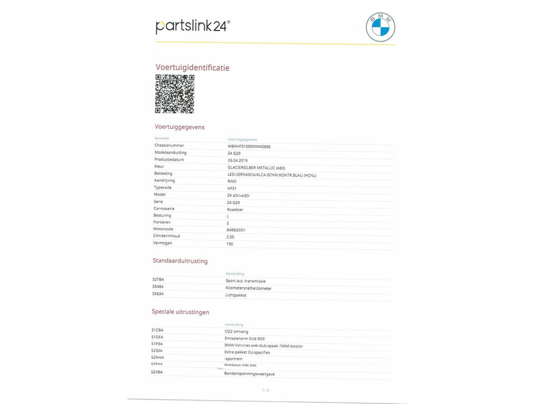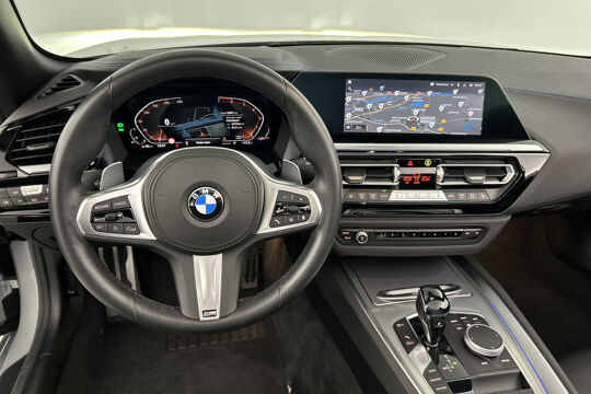 Alle ritinformatie en communicatie is gebundeld in één overzichtelijk digitale dashboard. Omdat u nou eenmaal geen ogen in uw achterhoofd heeft, is het altijd lastig om achteruit te rijden zonder brokken te maken. De achteruitrijcamera lost dat probleem op. Dankzij Connected Services weet u precies waar uw auto geparkeerd staat. Ook andere functies, zoals bandenspanning en brandstofniveau, zijn via de app altijd onder handbereik. Het Harman/Kardon audiosysteem is afgestemd op het interieur van de auto. De geluidskwaliteit is onovertroffen. Nieuwe smartphones hebben geen snoeren meer nodig om op te laden. Daarom heeft deze BMW Z4 Roadster een draadloze oplaadmogelijkheid voor telefoons waarmee u onderweg simpel en effectief voor een volle accu zorgt. Ook is de BMW uitgerust met: met leder bekleed dashboard, dashboard met spraakbediening, Harman Kardon-audiosysteem, navigatiesysteem met harde schijf, WIFI-hotspot en achteropkomend verkeer waarschuwing.