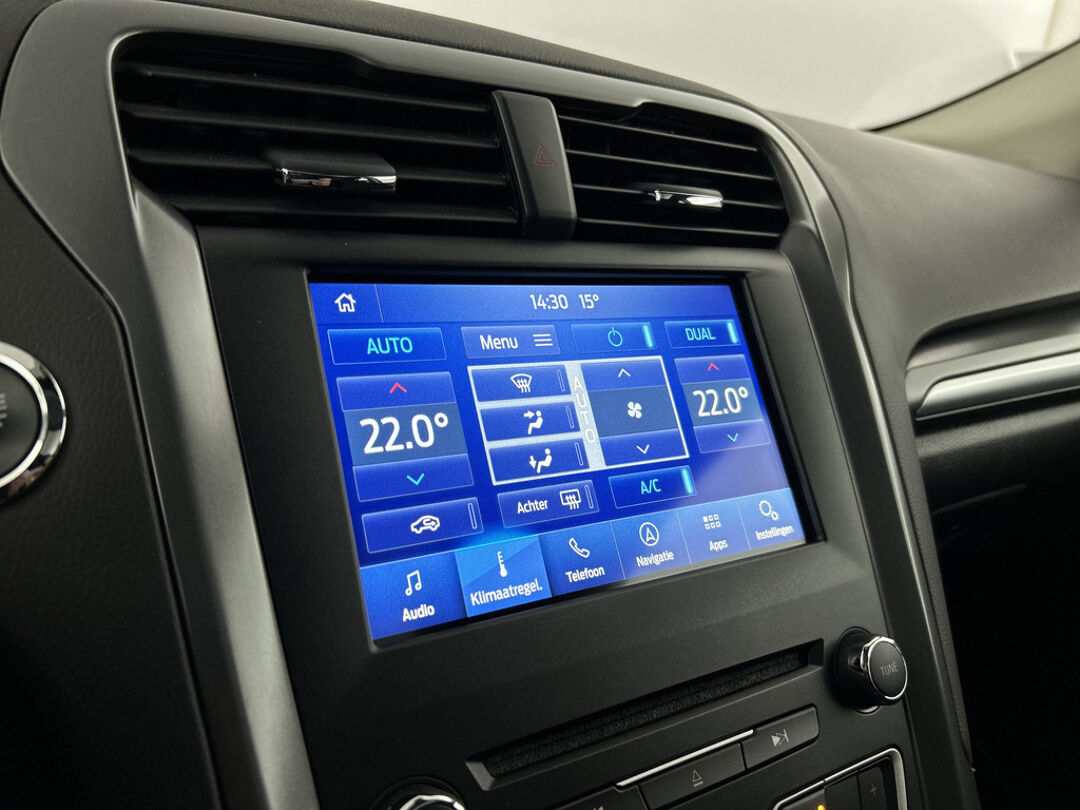 De bediening van het audiosysteem en het navigatiesysteem gebeurt met knoppen op het stuur. U verwacht natuurlijk automatische airconditioning in deze auto, en die is er dan ook. Met de aanwezige parkeersensoren weet u altijd zeker of het past. Het hoort bij een intelligente auto als deze dat hij zelf in staat is om zijn omgeving in de gaten te houden. Dat doet deze Ford met een automatisch inschakelbare verlichting en een regensensor. U bedient de cruise control eenvoudig zonder uw handen van het stuur te halen. Deze auto is voorzien van lederen sportstuur, keyless entry, automatisch dimmende binnenspiegel, isofix-aansluiting, centrale deurvergrendeling met afstandsbediening en bagage afdekhoes.