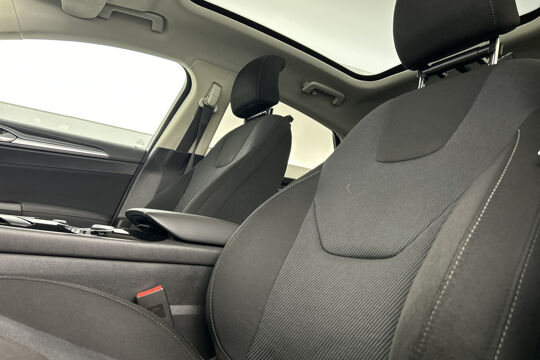 De nieuwste veiligheidssystemen komen in deze Ford Mondeo samen. Bij de veiligheidssystemen van deze Ford hoort ook de verkeersbord-detectie. Die leest tijdens het rijden als het ware met u mee en attendeert u op de significante verkeersborden langs en boven de weg. Voorzien van het Lane-keeping systeem. Ofwel: blijf automatisch in je baan. Wegrijden op een helling is kinderspel met hill hold control. Deze functie houdt de handrem automatisch vast op een steile ondergrond. U bent mede dankzij brake assist en bandenspanningcontrolesysteem steeds veilig onderweg.